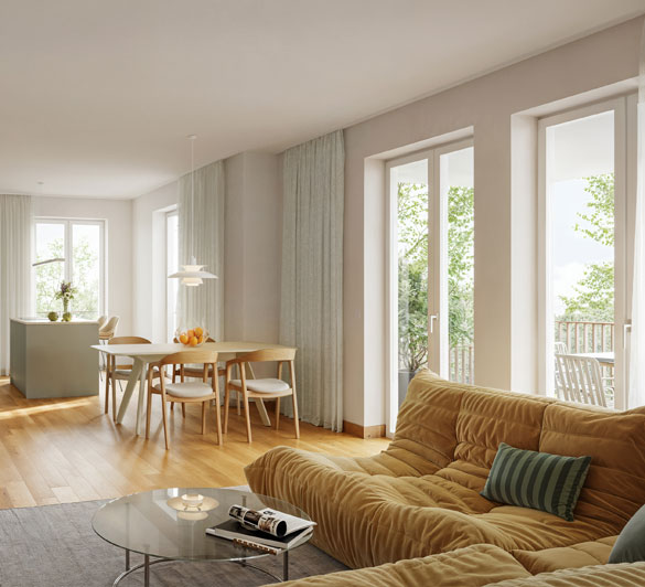Eine Entscheidung, die trägt – für ein Zuhause, das bleibt. Zwei Stadtvillen in klarer architektonischer Sprache, mit modern und hochwertig ausgestatteten Eigentumswohnungen, ruhig gelegen und doch nah am Geschehen. Für ein Leben im Gleichgewicht.