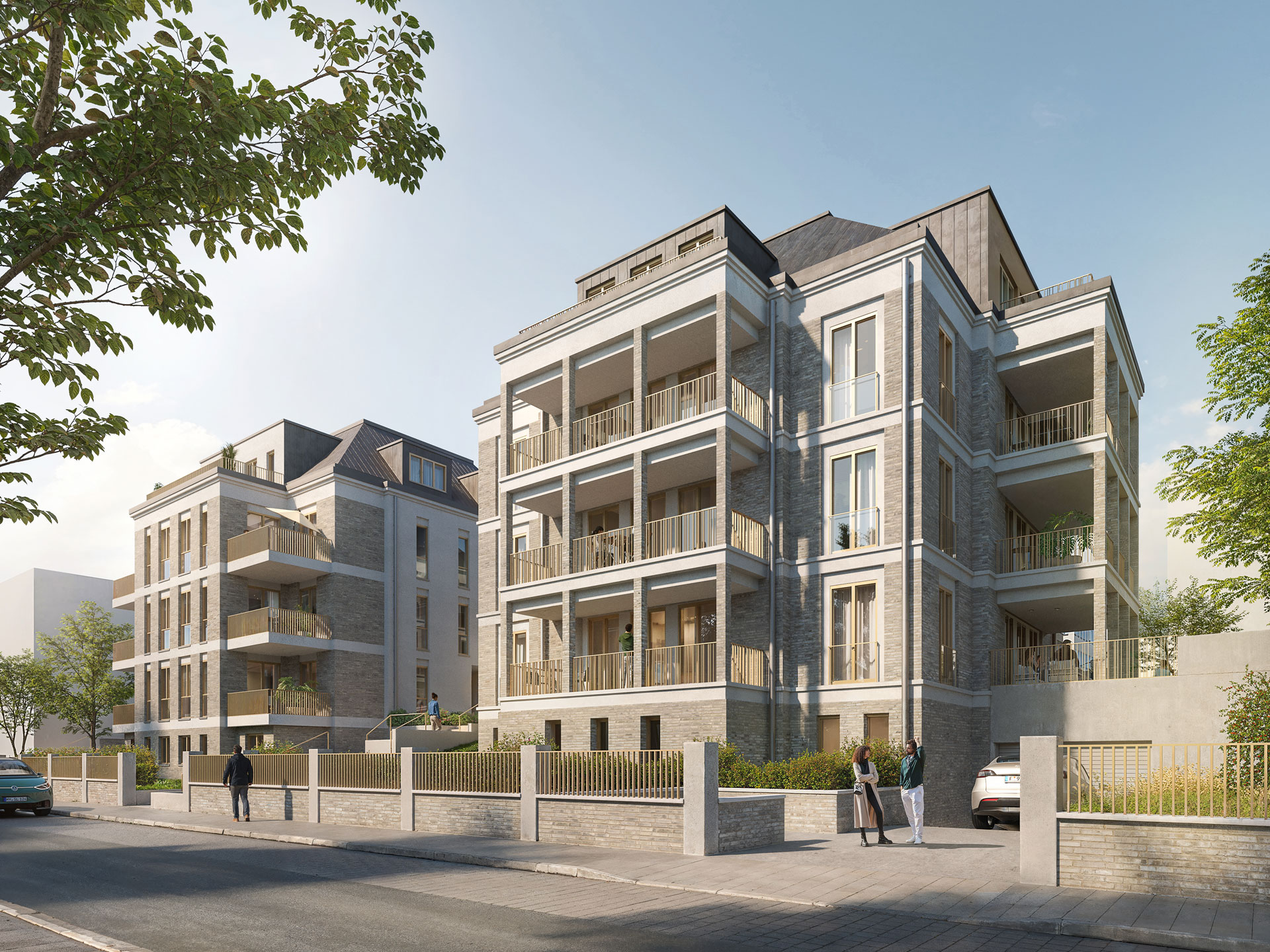 Zwei Häuser, ein Zuhause: viktoria² überzeugt durch hochwertige Klinkerarchitektur, die den historischen Gründerzeitcharme der Umgebung stilvoll interpretiert. Großzügige Raumhöhen und bodentiefe Fenster schaffen viel Platz, Licht und Luft für persönliche Wohnträume.
